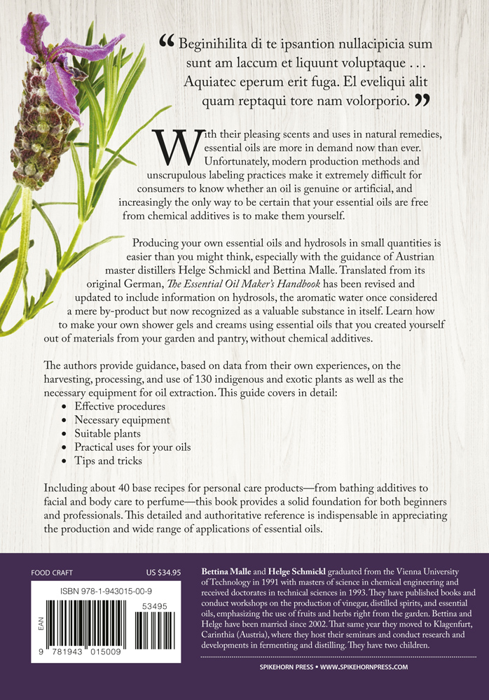 The compact manual to make your own essential oil and hydrolates: Learn in short step-by-step instructions how to produce essential oils and hydrolates by distillation, enfleurage, cold pressing and maceration. No background explanations are given, and the manual goes straight into the individual production steps.